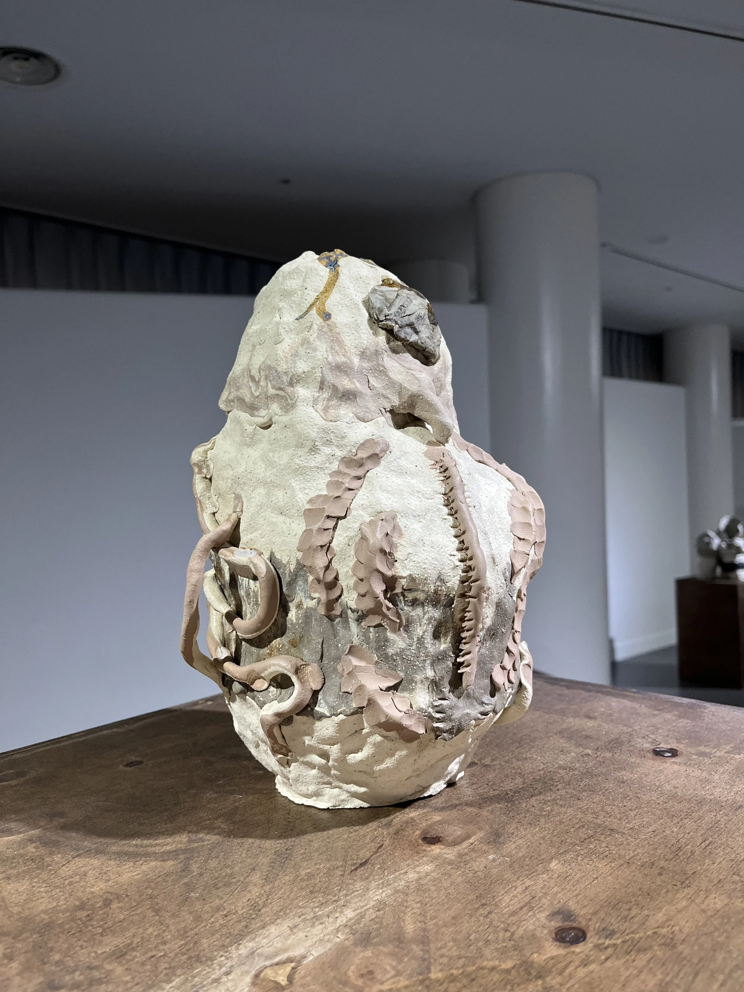 "chimera." Other beings are introduced into her work as companions in survival. These entities adapt and survive through endless change, altering forms of relationships or changing the objects of their relationships as needed, rather than being fixed and regulated. The artist aims to understand that an individual's survival is a part and product of the community, and that it involves accepting and evolving through the surroundings, rather than being a fixed entity. Recently, she has been using plants and interconnected organisms to reveal the connectivity between individual survival and interconnectivity among beings.