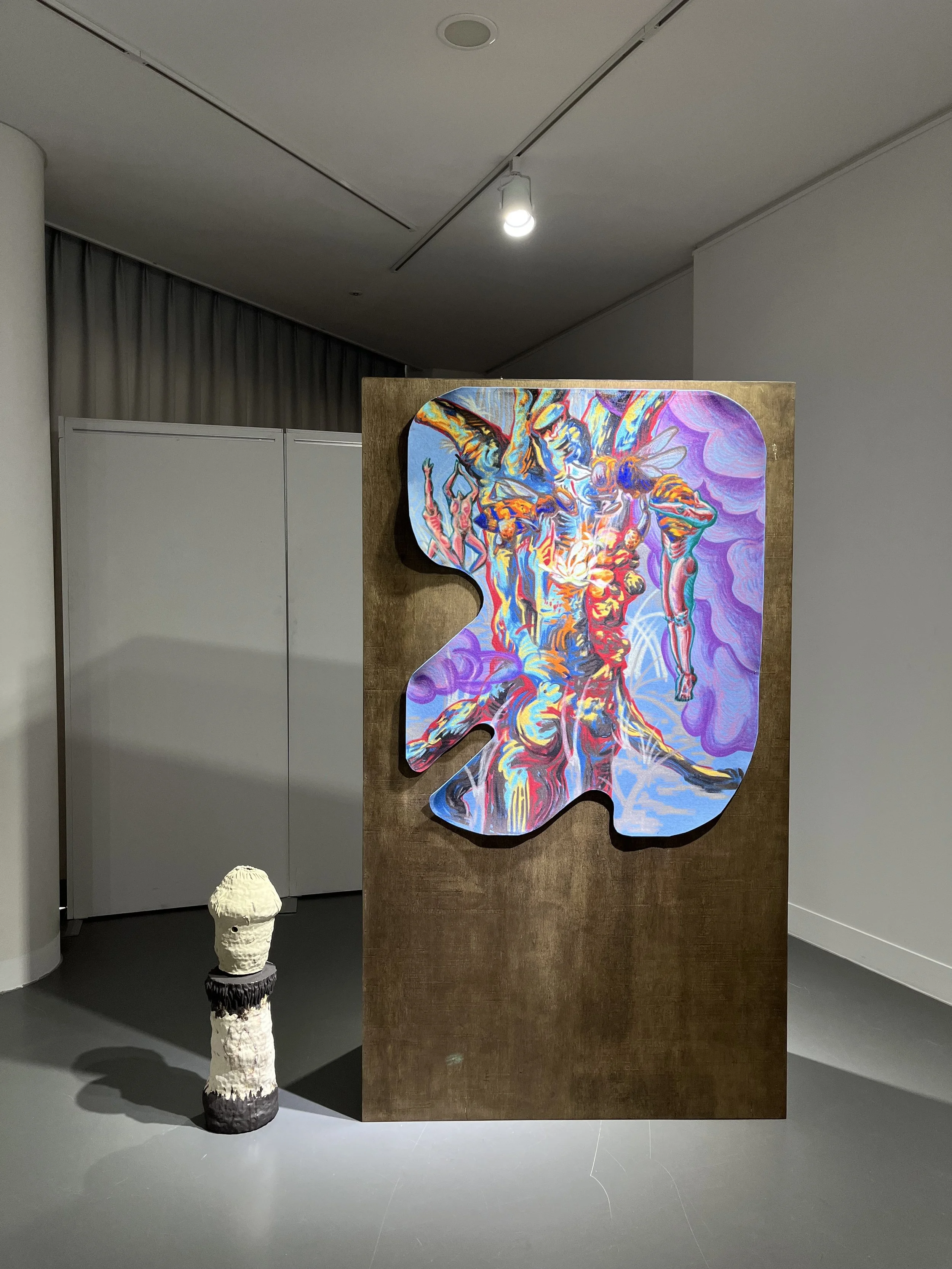 생존 욕구로 인해 발생하는 각자의 기작과 다양한 삶이 교차되는 지점에 흥미를 가지고, 이들의 삶을 서로 밀접하게 인식한다. 작가는 모든 생명이 서로의 생존에 영향을 주고받는 있으며, 이들이 가진 상호관계가 필수불가결하다고 생각한다. 모든 생명은 독립된 존재이기보다 서로 외부에 장기로로서 존재, 배치되는 하나의 연결된 덩어리로 인지하고 있다. 이러한 덩어리를 일종의 '키메라'*로 이해하며, 생존의 동료로서 다른 존재들을 작품으로 끌고 온다. 이들은 필요에 따라 관계의 형상을 달리하거나 관계 맺는 대상을 달리 하는 등, 고정되고 규정되기보다는 끝없는 변화를 통해 생존해 간다. 한 개체의 생존이 공동체의 몫이자 산물이라는 것, 그리고 개체가 고정된 존재가 아닌 주변의 것들을 수용하고 변화하며 존재해가는 것을 이해하고자 한다.